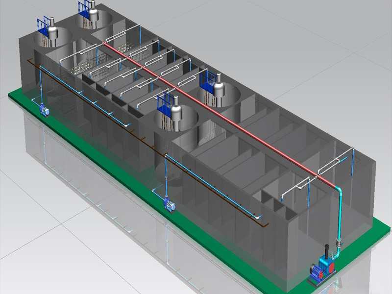 4、接觸氧化池內采用曝氣器進行鼓風曝氣,使纖維束不斷飄動,曝氣均勻,微生物生長成熟,具有活性污泥法的特征;