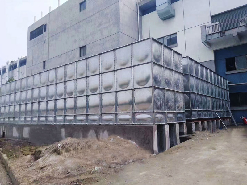 1、焊接底架——根據水箱板塊尺寸確認槽鋼的間距,首先將槽鋼電焊固定,用水平尺校對,確保其平整然后整體焊接。